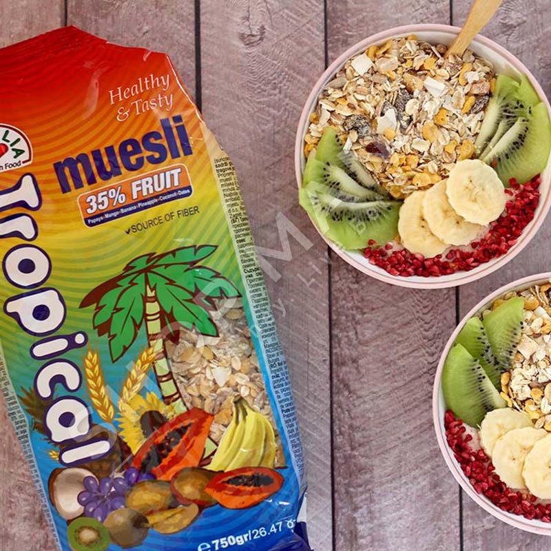 Muesli tropikal paraqet nje diete te shendetshme, te ekuilibruar me shije dhe arome te mrekullueshme.