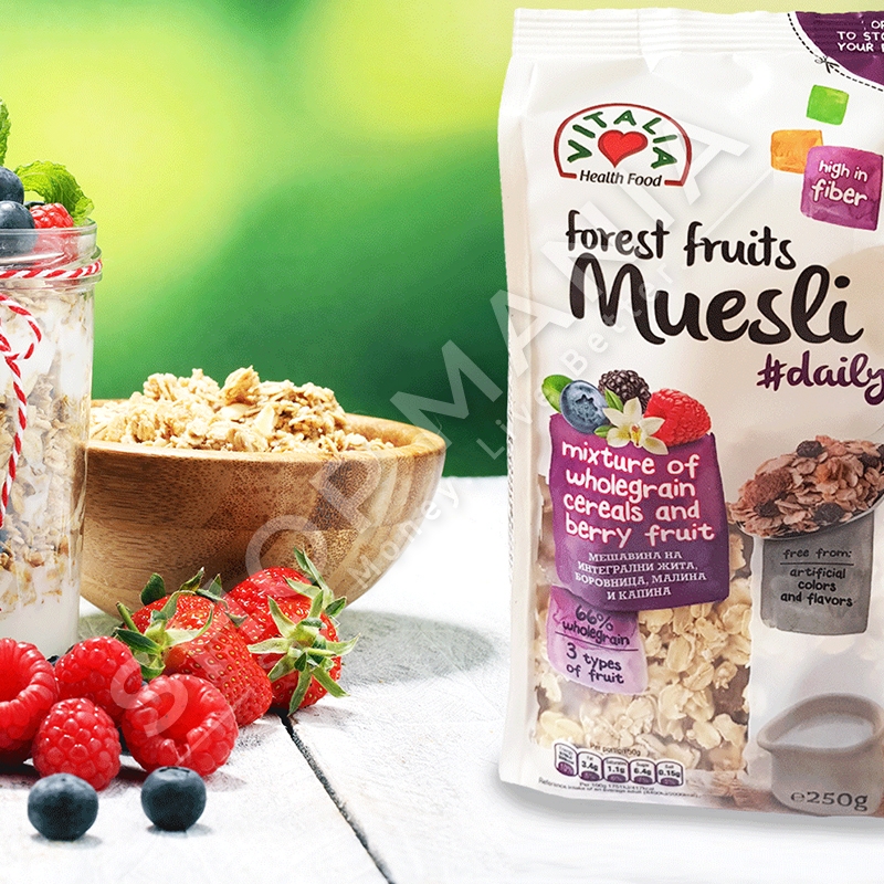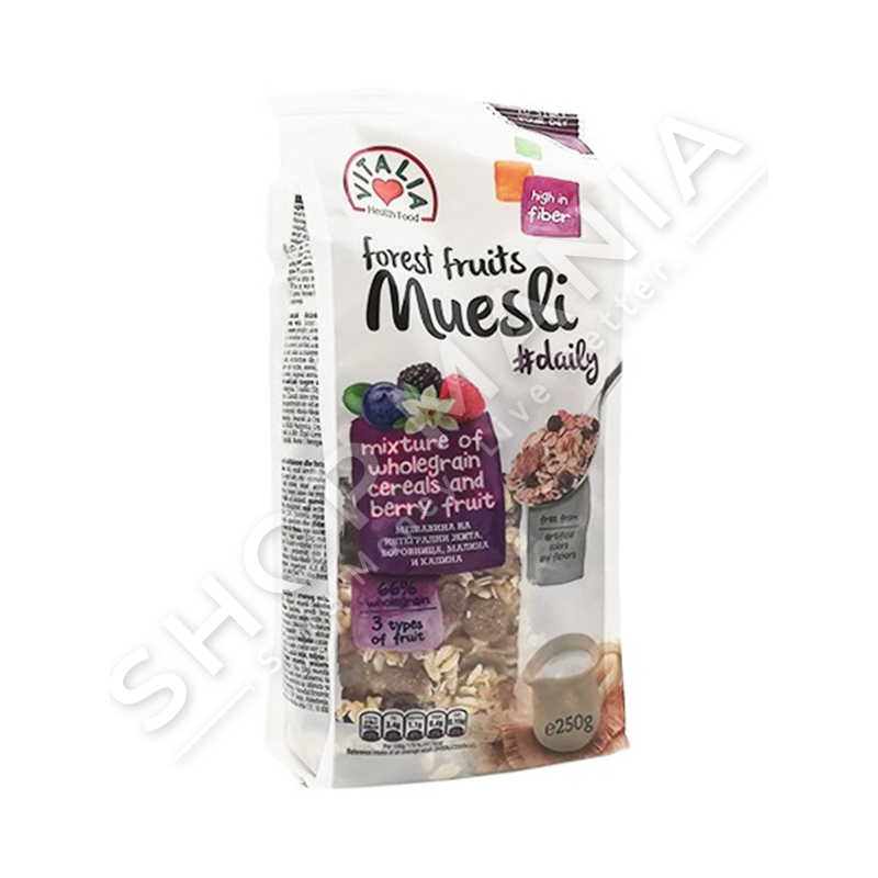 Vitalia Muesli me fruta pylli eshte nje ushqim i shendetshem, me cilesi te larte i prodhuar ne nje recete origjinale.