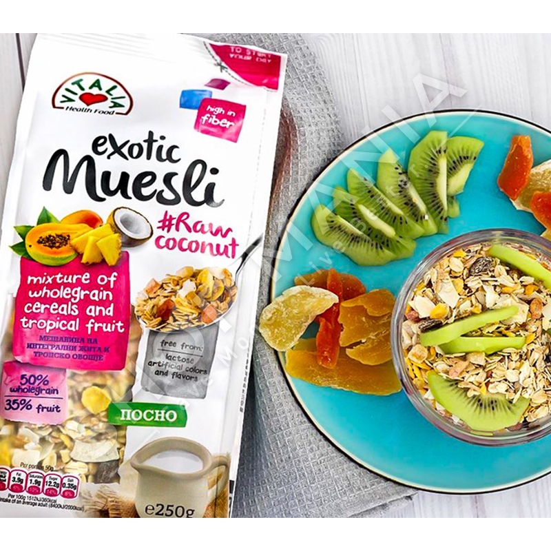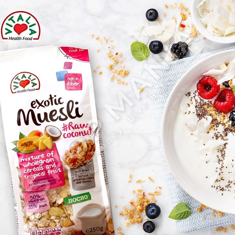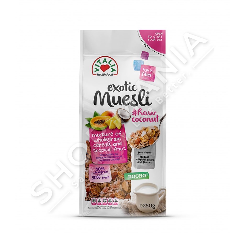 Vitalia sjell per ju muesli me fruta tropikale, nje ushqim te shendetshem me cilesi te larte i prodhuar nga nje recete origjinale.