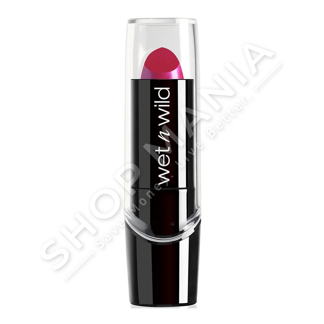 Buzekuq "Wet N Wild Silk Finish Lipstick Fuchsia With Blue Pearl" me nje ngjyre te qendrueshme per buzet, me baze te bute qe siguron hidratim.