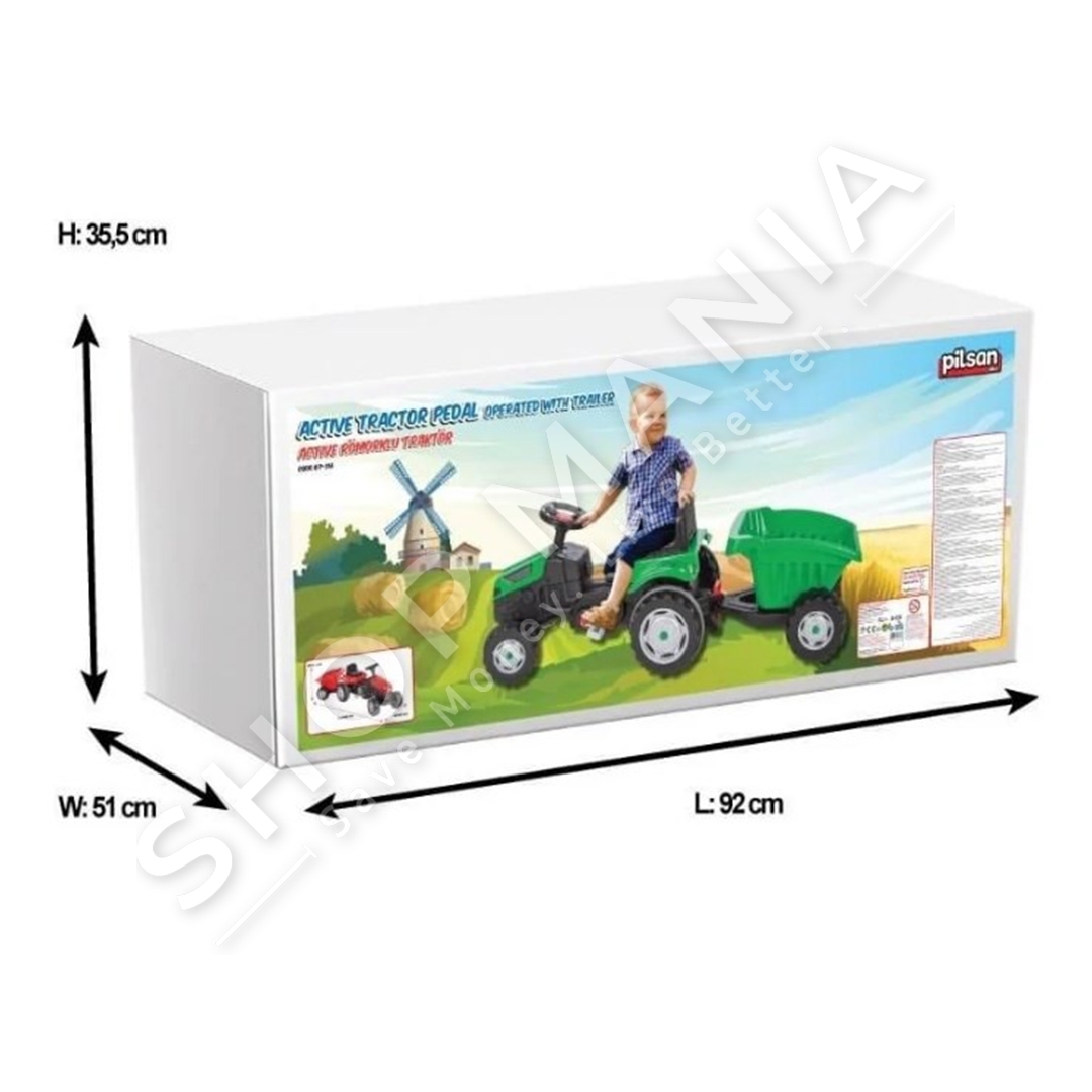 Traktori "Pilsan Active Pedal Tractor With Trailer Green" eshte projektuar per femije mbi 3 vjec, eshte shume i lehte per t'u kontrolluar duke lejuar qe dhe femijet me te vegjel ta ngasin me lehtesi.