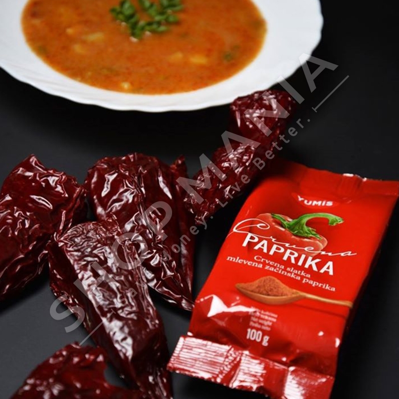 Paprika ka nje shije te embel. Eshte nje spec i kuq i cili eshte lare, thare, shtypur dhe nxehur per te leshuar vajin ne fara. Ndervepron me pigmentin ne bishtajat per te prodhuar ngjyren e kuqe te ndezur.